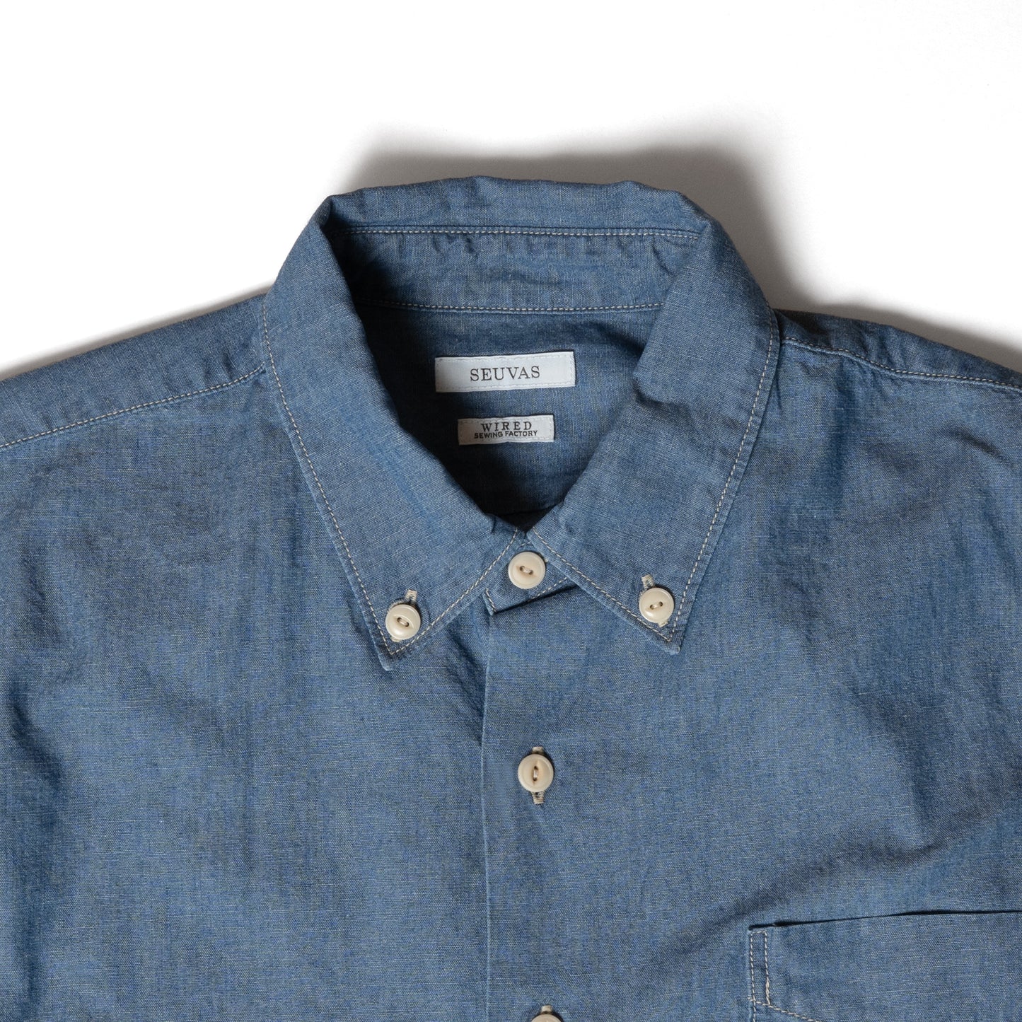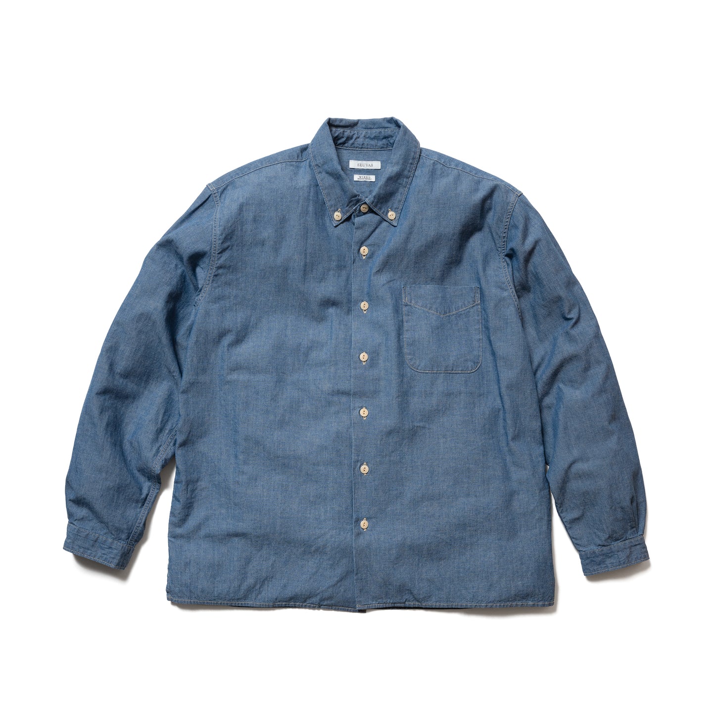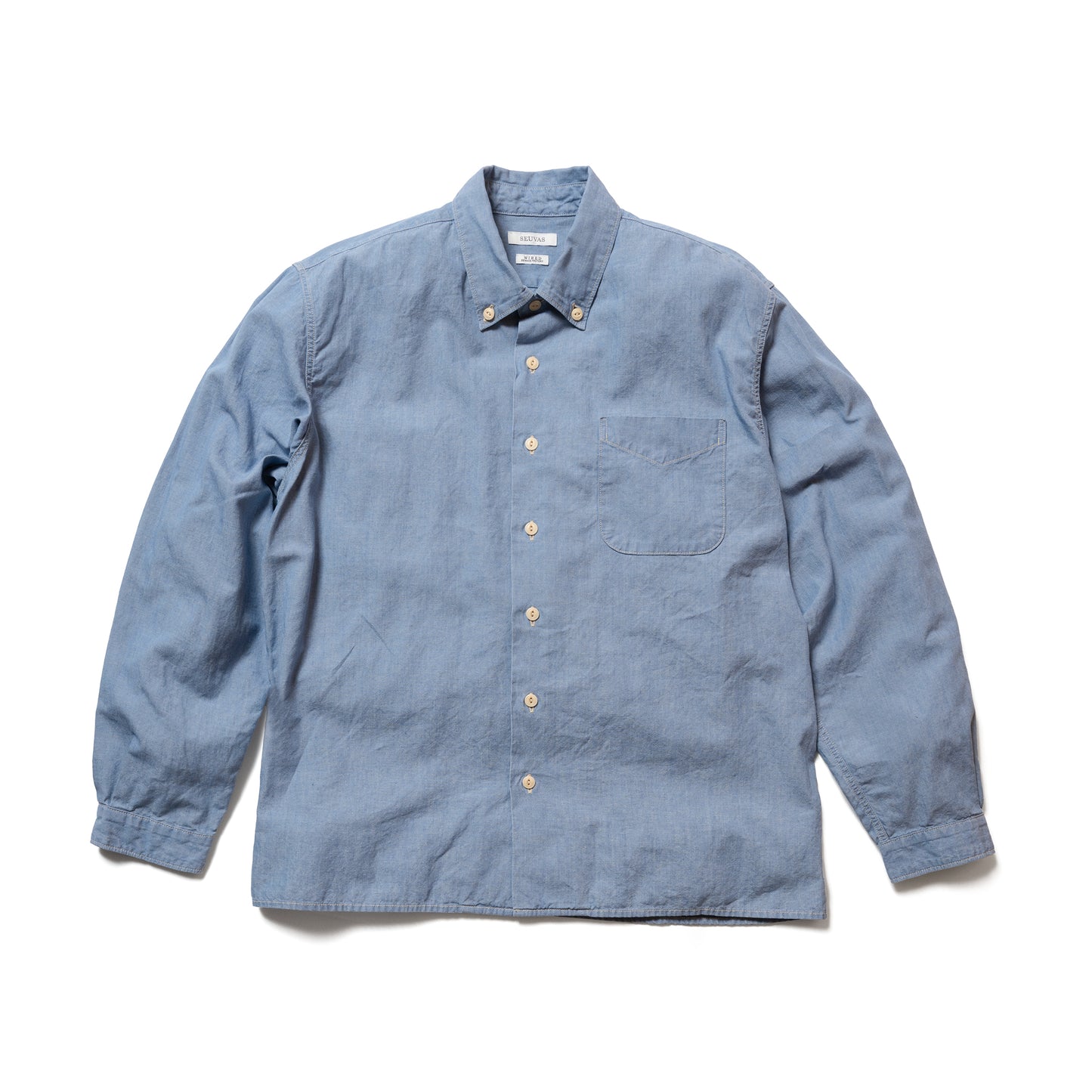 オーセンティックなシャンブレー生地を使用したリラックスシルエットの潰し衿BDシャツです。程良い加工感による長年愛用したような風合いと着心地の良さが特徴です。