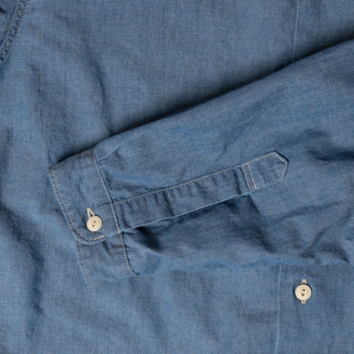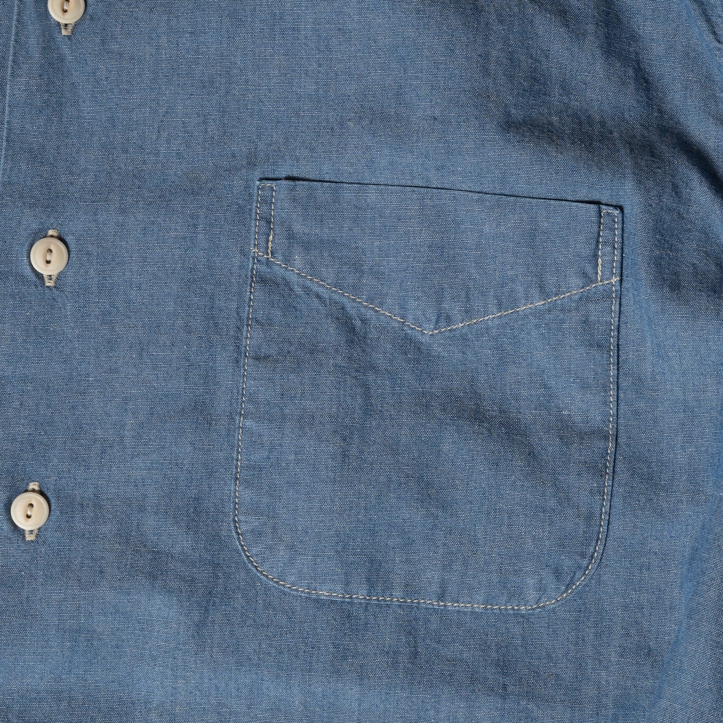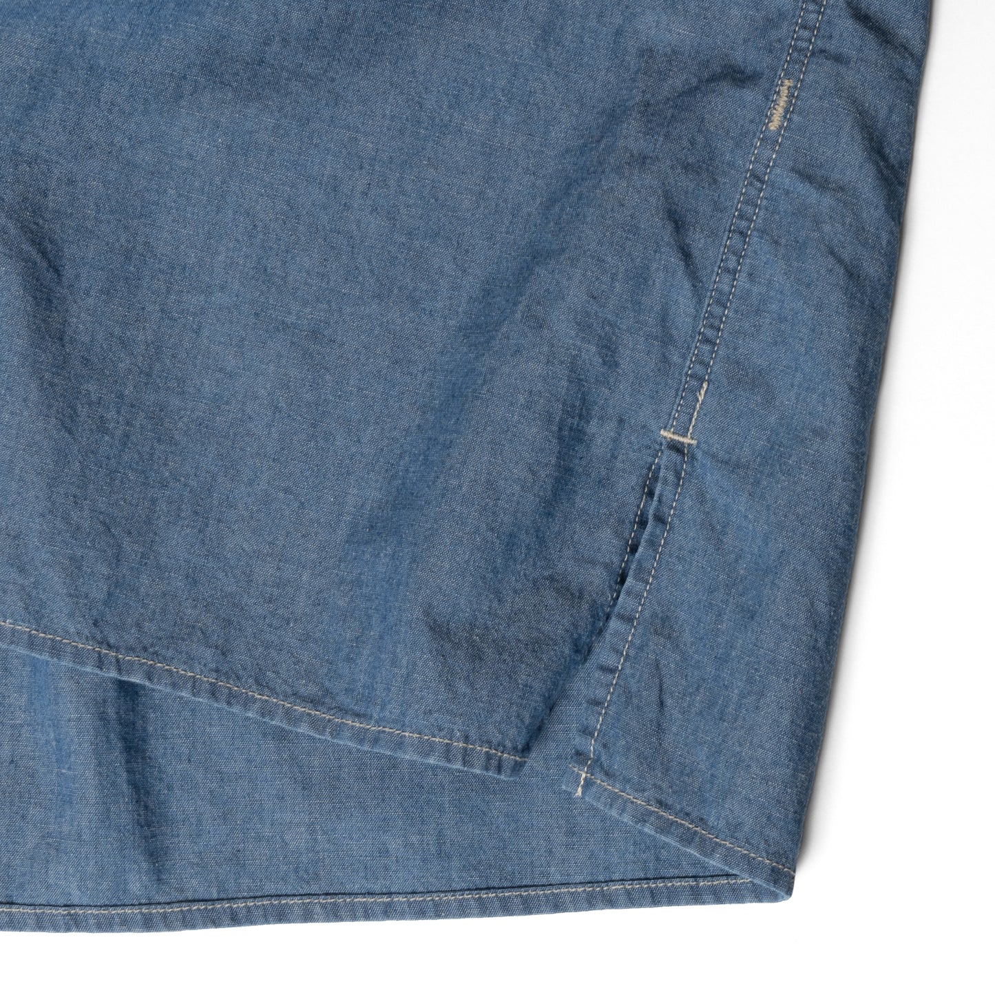 オーセンティックなシャンブレー生地を使用したリラックスシルエットの潰し衿BDシャツです。程良い加工感による長年愛用したような風合いと着心地の良さが特徴です。